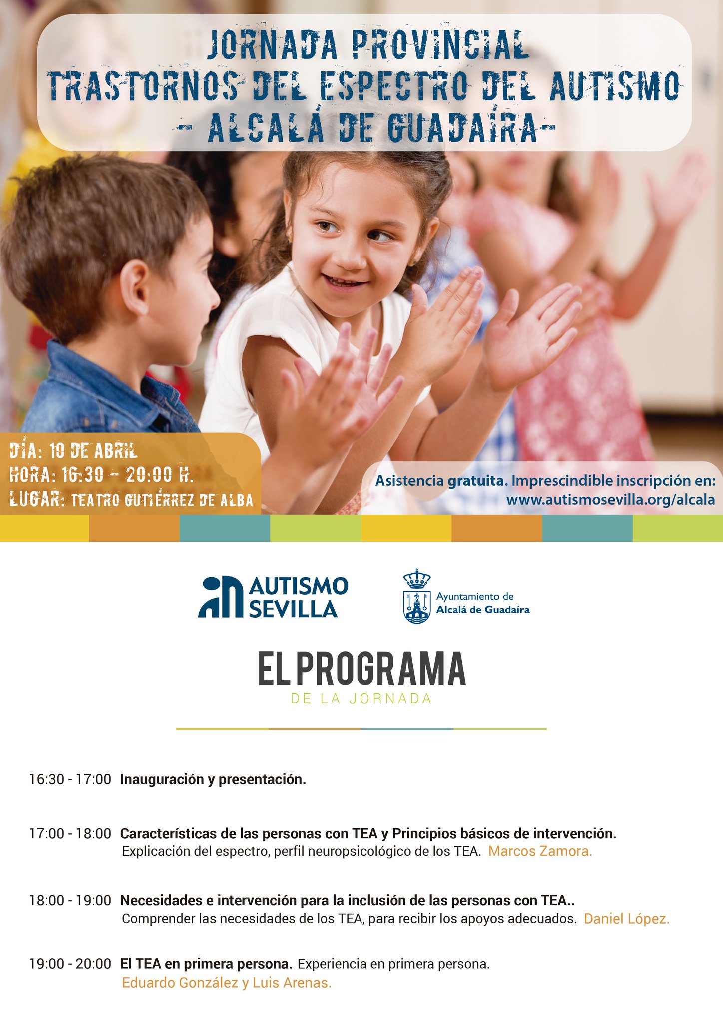 El próximo día 10 de Abril Autismo Sevilla realizará la Jornada Provincial Trastorno del Espectro del Autismo en el Teatro Gutiérrez de Alba de Alcalá de Guadaira (Sevilla) en horario de 16:30 a 20:00 h.